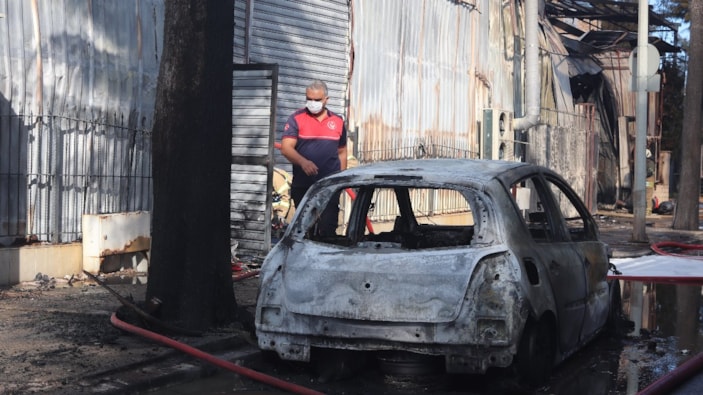 Yangında iş yeri yakınında bulunan 2 aracın da hasar gördüğü öğrenilirken, itfaiye ekiplerinin alevleri kontrol altına alma çalışmaları devam ediyor.