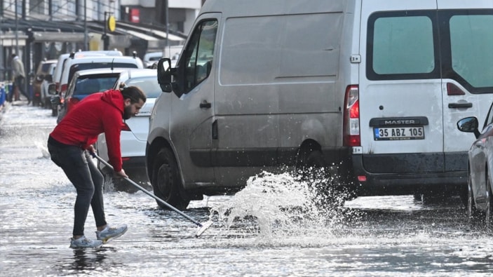 İzmir’de sağanak yağış nedeniyle cadde ve sokaklar göle döndü.