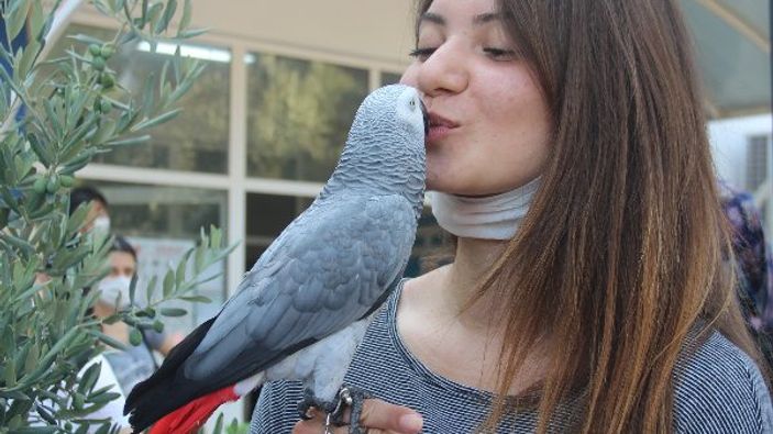 Aleyna Üzer isimli aday, sınava 7 yıldır beslediği ve şans getireceğine inandığı papağanı Paşa ile geldi.