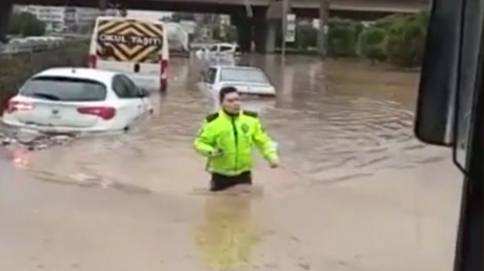 Sel felaketinde 2 kişi hayatını kaybederken, yaralar sarılmaya çalışılıyor. Diğer taraftan İzmir polisi, yolda kalan ve araçları suya gömülen vatandaşların yardımına koştu.