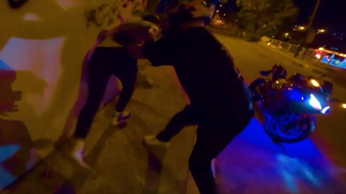 Heyecan dolu anlar, motosiklet sürücüsünün kask kamerasıyla görüntülendi.