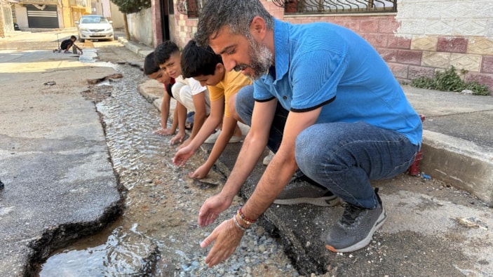 Şu su 3 gündür akıyor. Bir mahalleye yetecek su akıyor şurada. İki tane araba çukura battı burada. Dün neredeyse yüklü araba devriliyordu. Hiçbir Allah'ın kulu gelip de onarmaya çalışmıyor" diye konuştu.