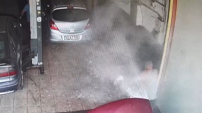 Olay anları, iş yerinin güvenlik kamerası tarafından saniye saniye kaydedildi.
