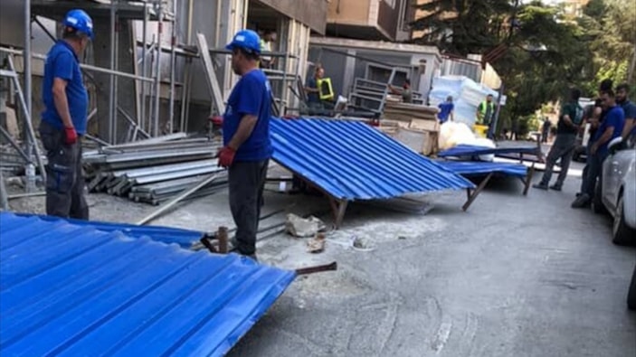 İstanbul'un Kadıköy ilçesine bağlı Bostancı Mahallesi'nde şiddetli rüzgar nedeniyle inşaat alanını çevreleyen demir panolardan biri yerinden koparak savruldu.