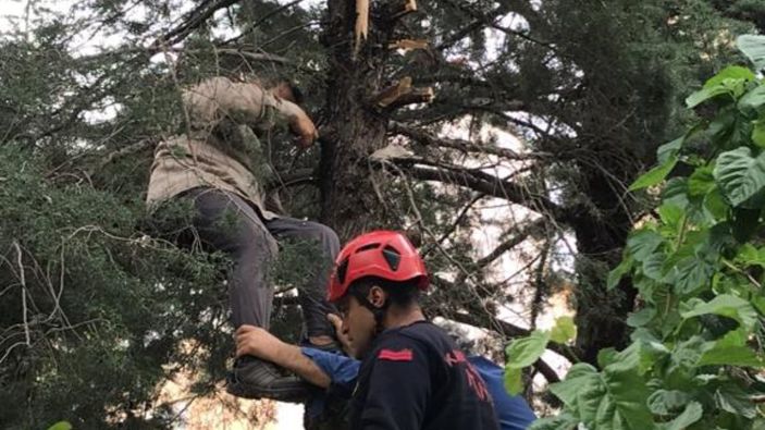 Demirci, bir süre sonra ağaçta fenalaşarak, yakınlarından yardım istedi. Aşağı inemeyen Demirci'nin yakınlarının ihbarı üzerine bölgeye sağlık ve itfaiye ekipleri sevk edildi.