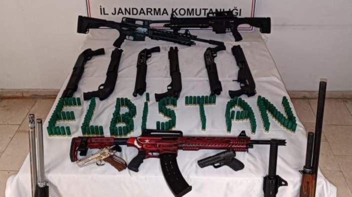 Kahramanmaraş’ın Elbistan ilçesinde, jandarma ekiplerinin bir düğün merasimine katılmak için gelenlerin araçlarında yaptığı aramada 12 tüfek, 2 tabanca ve silahlara ait çok sayıda fişek ele geçirildi.
