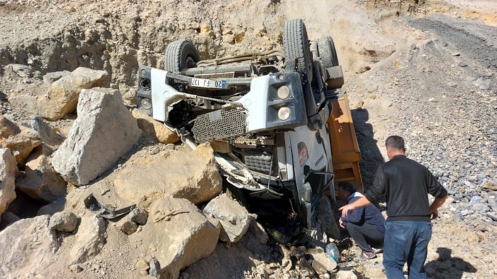 Kahramanmaraş’ta hafriyat kamyonu devrildi