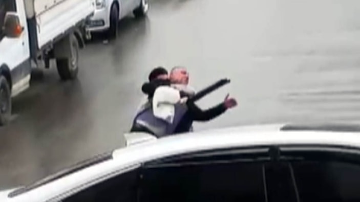 Bu sırada Gökhan Kalkan aracından çıkarak kayınpederinin üzerine atlayıp, silahını almaya çalıştı. Yaşananlar, çevredeki bir kişi tarafından cep telefonuyla görüntülendi.