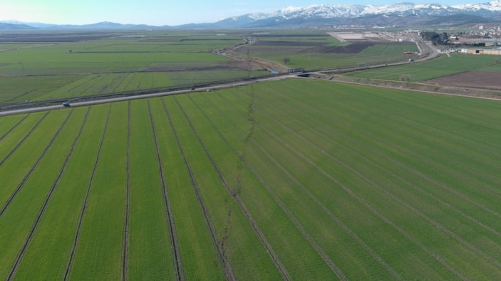 Depremin merkez üssü Kahramanmaraş'ın, Hacıbebek Mahallesi üzerinde bulunan tarım arazilerinde kilometrelerce uzanan fay kırıkları havadan görüntülendi.