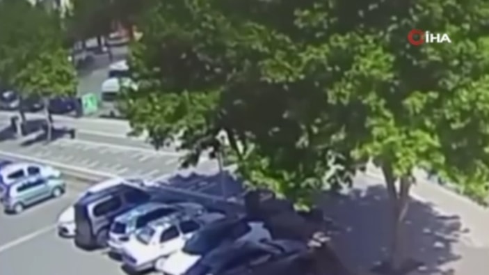 Kaza anı ise bir iş yerinin güvenlik kamerasına yansıdı.