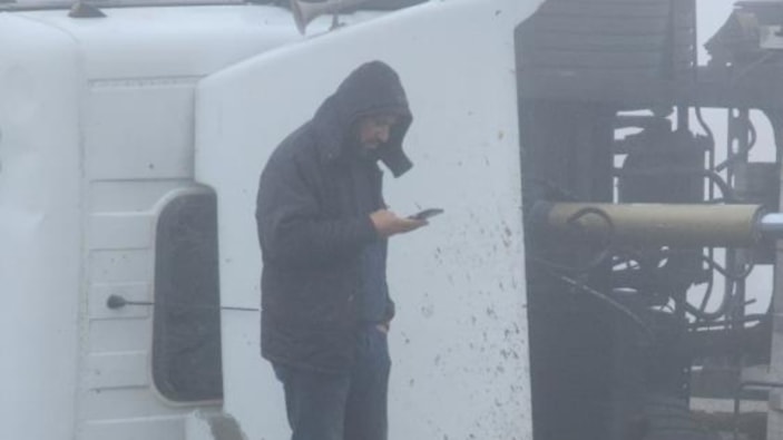 Yoğun sisin olduğu Erçene çevreyolu kavşağında tır, sürücüsü İ.T.'nin direksiyon hakimiyetini kaybetmesi sonucu devrildi.