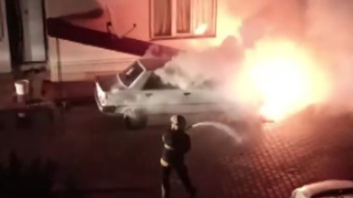 İhbar üzerine olay yerine sevk edilen itfaiye ekipleri yanan otomobile müdahale ederek söndürdü.