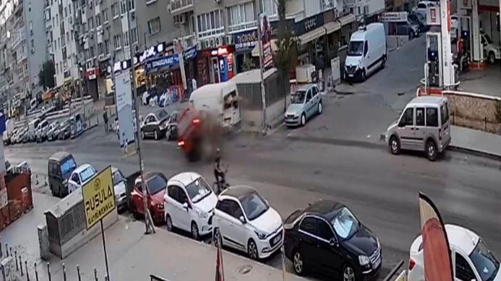 Hafif ticari aracın kontrolden çıkarak park halindeki araçlara çarpması sonucu 3 kişi yaralanırken, o anlar kameraya yansıdı.