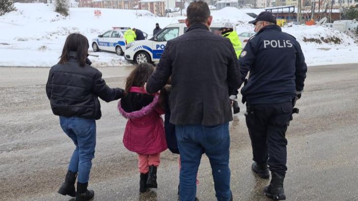 Polis aracı ile ifadesi alınmak üzere karakola getirilmek istenen sürücü aracında çocuklarının olduğunu hatırlayınca polisler, yaşları küçük 3 kız çocuğunu da araçtan alarak babaları ile birlikte polis otosuyla karakola getirdi.