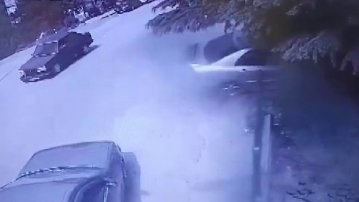İhbar üzerine olay yerine polis ve itfaiye ekipleri sevk edilirken kaza anı bir iş yerinin güvenlik kamerasına saniye saniye kaydedildi.