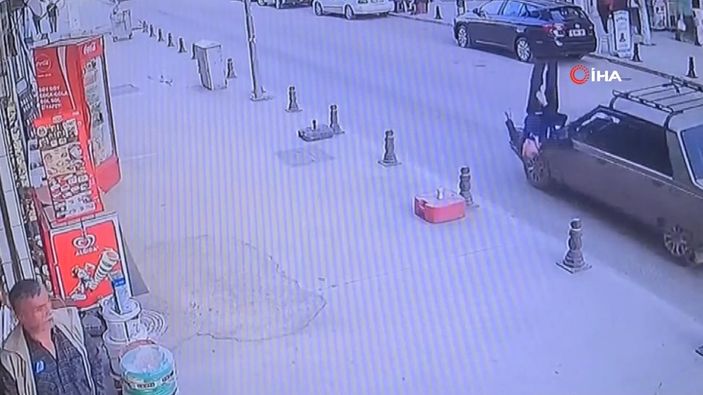 Kaza anı ise bir iş yerinin güvenlik kamerasına saniye saniye yansıdı.