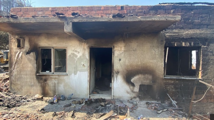 Kamış köyü Merkez Mahallesi'nde yaşayan ve orman yangınında evi kullanılmaz hale gelen İbrahim Özdem, "Bir yangın afeti oldu. Evimiz yandı. Çok şükür kendimize bir şey olmadı.