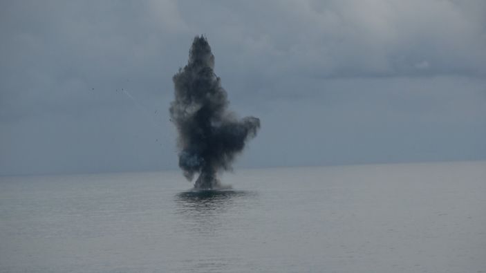 Son olarak Trabzon'un Çarşıbaşı ilçesi açıklarında bir balıkçı teknesi tarafından fark edilen yabancı menşeli cisim, Yoroz Limanı'na getirilerek askeri personel tarafından kontrollü şekilde patlatılarak imha edildi.