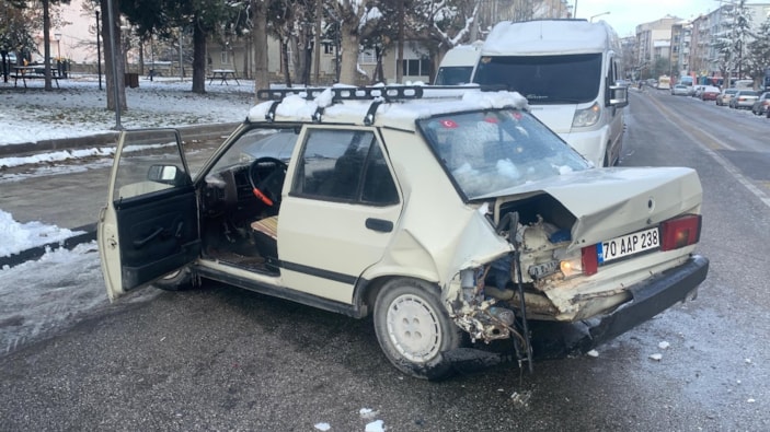 Karaman'da kent merkezine bağlı Kemal Kaynaş Caddesi üzerinde seyreden otomobil sürücüsü A.Ş., geri manevra yaptığı sırada İ.Y. yönetimindeki hafif ticari araçla çarpıştı.