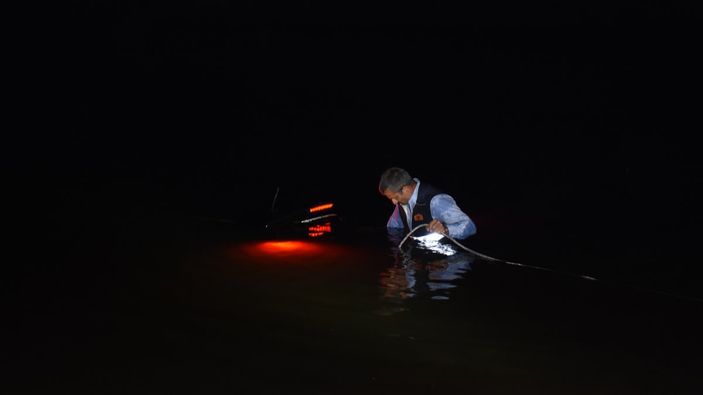 İhbar üzerine olay yerine sevk edilen itfaiye, 112 Acil Servis, jandarma, polis ve İl Afet ve Acil Durum Müdürlüğü (AFAD) ekipleri, suya gömülen araçta boğulmamak için otomobilin üzerine çıkan O.D ile L.E ve S.T'yi kısa sürede kurtardı.