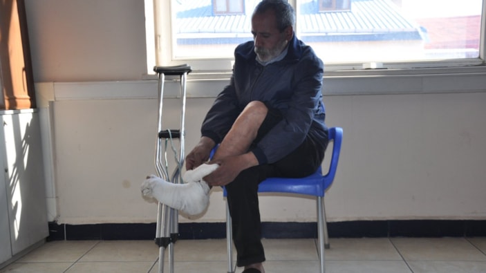 Görevlilerin ısrarıyla sargı bezlerini çıkartan Şahbettin Y. bacağını rahatlıkla hareket ettirdiği, oturup kalkarken de bir sorun yaşamadığı ve bastonsuz yürüdüğü görüldü.
