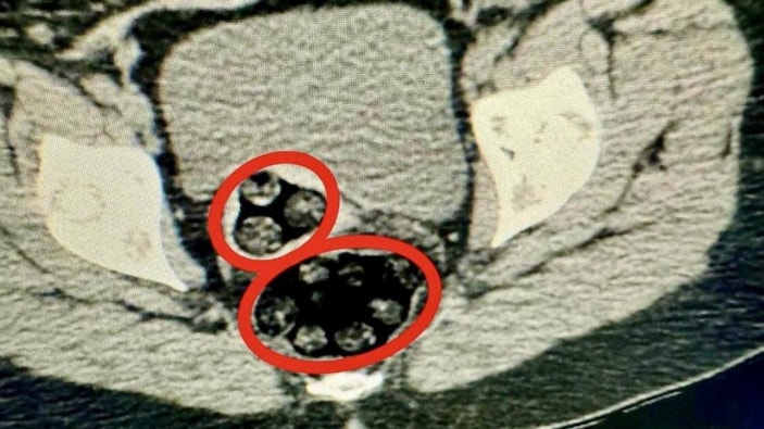Kars Harakani Devlet Hastanesi'ne götürülen Yenkejeh'in çekilen röntgeninde, makatında uyuşturucu tespit edildi.