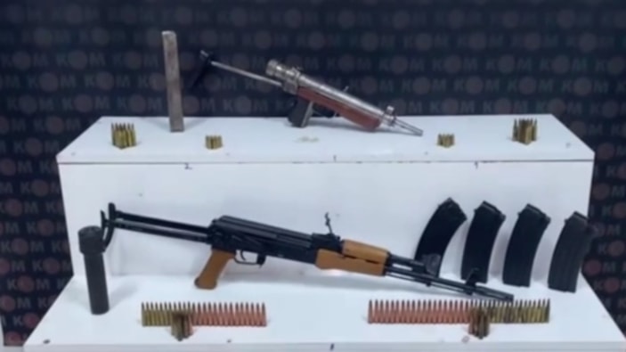 Ekiplerin titizlikle yürüttüğü arama sırasında, ofisin banyo bölümündeki asma tavana gizlenmiş bir kalaşnikof, bir thompson marka uzun namlulu silah, susturucu, 5 uzun namlu şarjörü ve 119 uzun namlu fişeği ele geçirildi.