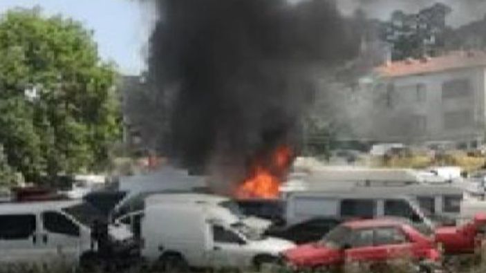 Otoparka çekilmiş bir minibüste çıkan yangın 3 araca daha sıçrarken, yangın itfaiye ekiplerince kontrol altına alındı.
