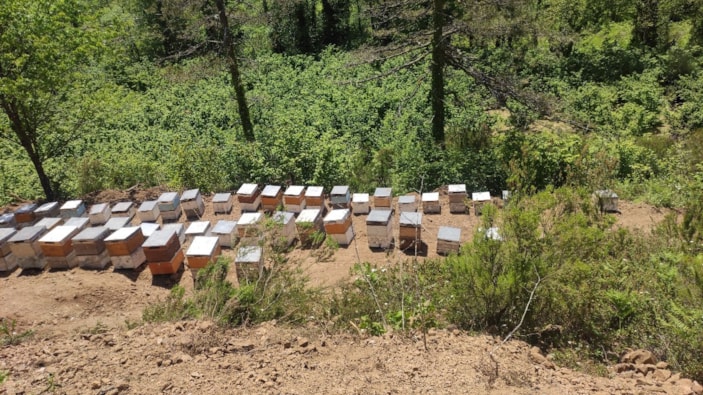 Kastamonu'da 15 yıldır kestane balı üretimi yapan Hüsnü Şinoforoğlu, kestane balı üretimi yapmak için 225 arı kovanını Doğanyurt ilçesinde kiraladığı araziye yerleştirdi.