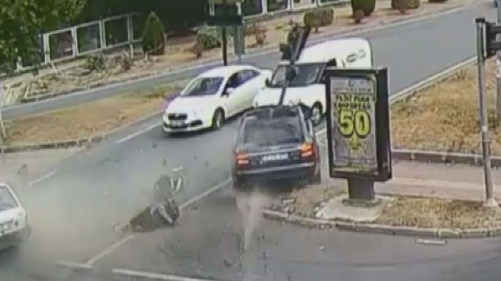 Kadın, yerde bir süre sürüklenirken diğer otomobil ise trafik ışığına çarparak durabildi. Yerinden sökülen ışık direği ise başka bir aracın üzerine devrildi. Yaşanan kaza anı da MOBESE kameraları ile saniye saniye kaydedildi.