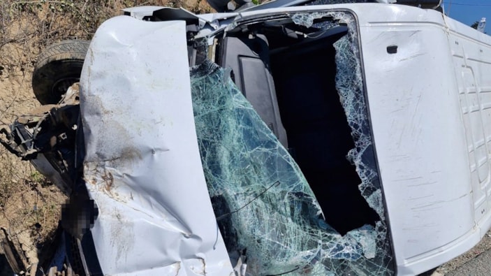 Kastamonu'da kontrolden çıkan minibüs su kanalına devrildi