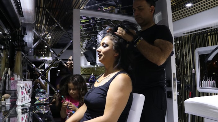 İnsanların hem iş yerlerini he de evlerini görünce şaşırdıklarını belirten Dilek Kılıçlı, “25 yıldır kuaförlük sektöründe çalışıyorum. Eşim, çocukluk hayali olan karavanı yapmak istedi. Ben de kuaför olduğum için ikisini birleştirmek istedik. Ardından da böyle güzel bir sonuç ortaya çıktı. Tam zamanlı olarak bu karavanda kalıyoruz. Aynı zamanda da kuaföre gelen müşterilerimizi burada ağırlıyorum. Kuaförde bulunan bütün hizmetlerin çoğunu ‘kuaförbüste’ yapabiliyorum.