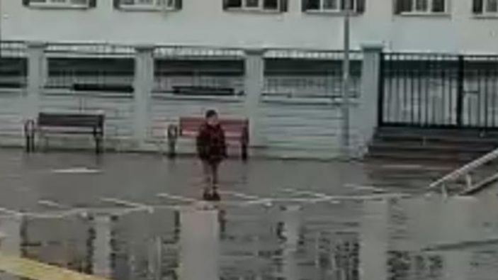 Melikgazi'de bir öğrenci, 10 Kasım Atatürk’ü Anma Günü dolayısıyla okulunda düzenlenen programa geç kalınca, sağanak yağışa aldırış etmeden saat 09.05’i gösterdiğinde saygı duruşuna geçti.