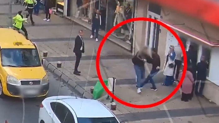 Bu sırada çevredeki bir kişinin taktığı çelmeyle yere yığılan E.P., polis tarafından gözaltına alındı.