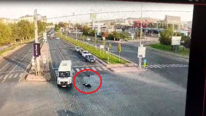 Sabah saatlerinde skuter ile seyir halinde ilerleyen 17 yaşındaki genç, kırmızı ışıkta geçtiği sırada önce otomobil, ardından minibüsün çarpmasıyla savruldu. O anlar kameraya yansıdı.