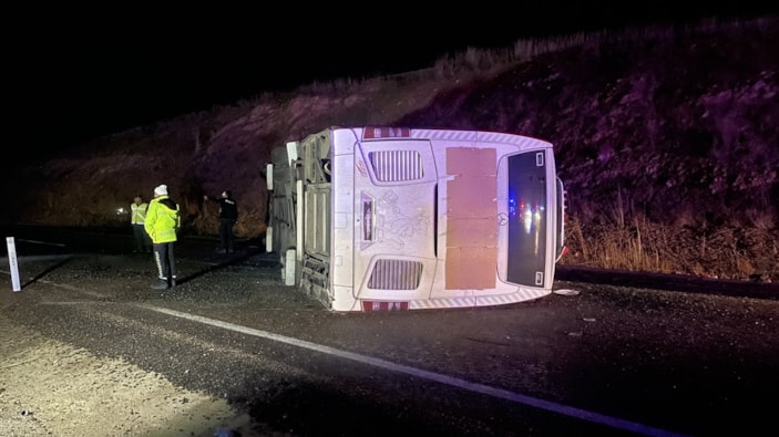 Kayseri'de Malatya kara yolunun 91. kilometresi Karaboğaz mevkisinde Muş'tan İstanbul'a giden Burhan D. idaresindeki yolcu otobüsü iddiaya göre sağanak yağış nedeniyle kayganlaşan yolda kontrolden çıkarak devrildi.