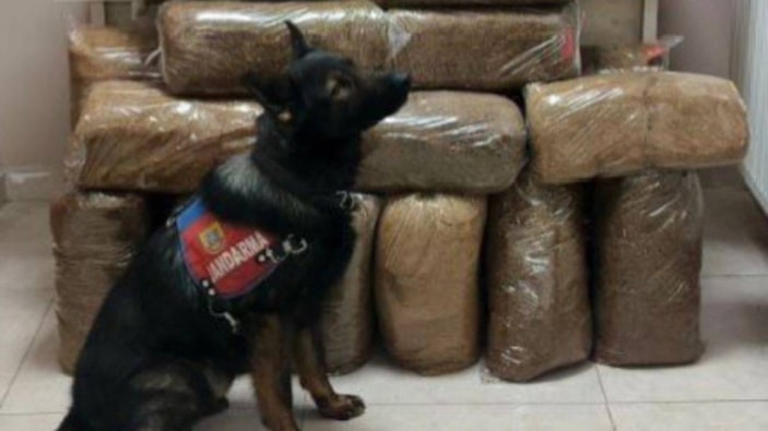 Kontrollerde çay ve tütün tespit köpeğinin tepki verdiği yolcu otobüsünde yapılan aramalarda 228 kilogram bandrolsüz kıyılmış tütün bulundu.