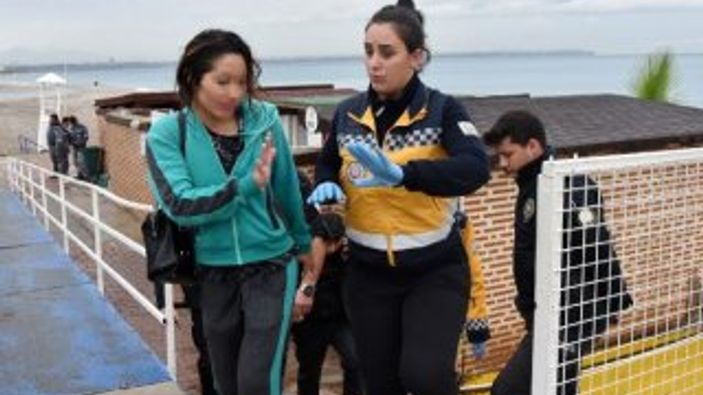 Alkolün etkisiyle ayakta durmakta güçlük çeken ve Antalya'da yerleşik yaşadığı öğrenilen Kazakistanlı Aidana N., saat 15.00 sıralarında geldiği Konyaaltı sahilinden kıyafetleriyle denize atladı.