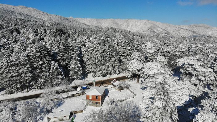 Kazdağları’nın beyaz örtüsü drone ile havadan görüntülendi.