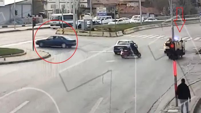 Kırıkkale'de bir sürücü, trafik polisinin gözü önünde otomobiliyle kavşakta drift yaptıktan sonra kırmızı ışık ihlali yaptı.