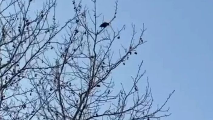 Sesin kargadan geldiğini fark eden Ferik, o anı cep telefonu kamerasıyla görüntüledi. Çevredekilerin de görüntülemeye çalıştığı karga, bu esnada uçarak bölgeden uzaklaştı.