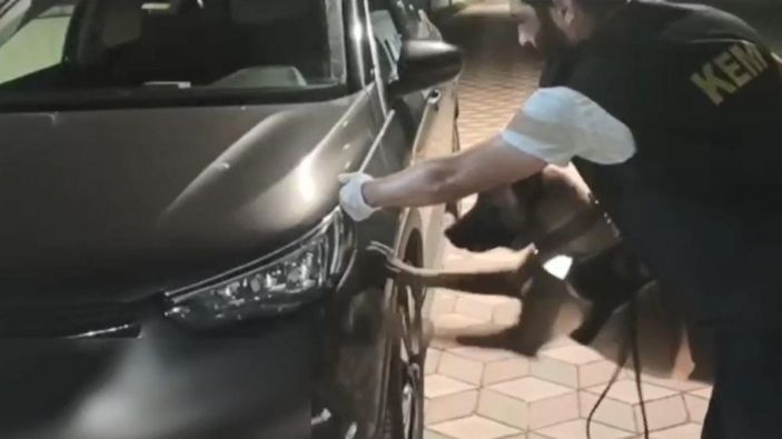 Köpeğin, aracın motor kısmına tepki vermesi üzerine 5 kilo metamfetamin ele geçirildi.