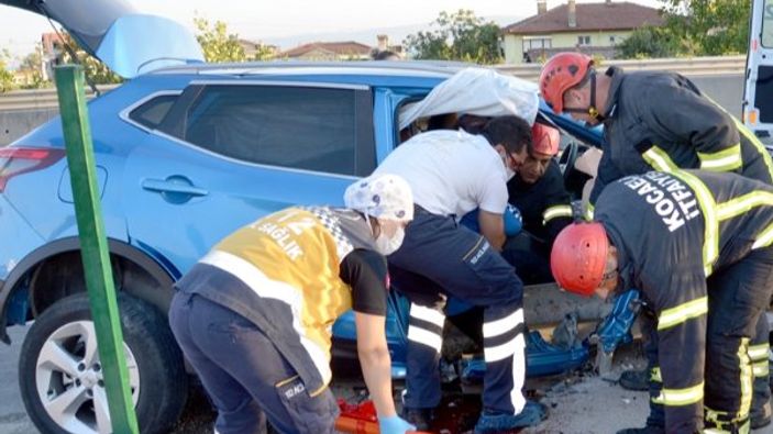 Araçta sıkışan ve ayağına demir bariyerin parçası saplanan sürücünün 42 yaşındaki eşi Zeliha Yurt, itfaiyenin müdahalesiyle bulunduğu yerden çıkarıldı.