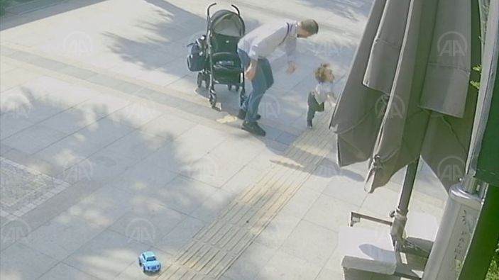 Sekapark'taki kafeteryanın güvenlik kamerasına yansıyan görüntülerde, bebek arabasındaki çocuğun yere düştükten sonra ayağa kalkması ve arabayı kullanan kişinin tokadıyla yeniden yere savrulması yer alıyordu. Kayıtlarda, daha sonra bu kişinin, yerden kaldırdığı çocuğu bebek arabasına bindirip yola devam ettiği görülüyordu.