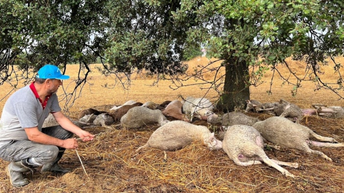 Koyunların yağmurdan saklanmak amacıyla sığındığı ağaca yıldırım düştü. 29 koyun, yıldırım çarpması sonucu telef oldu.