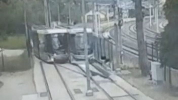 Kocaeli'de köpeğe çarpan tramvay süreyi geciktirince, karşı şeritten gelen tramvay ile çarpıştı. Kaza anı güvenlik kamerasına saniye saniye yansıdı.