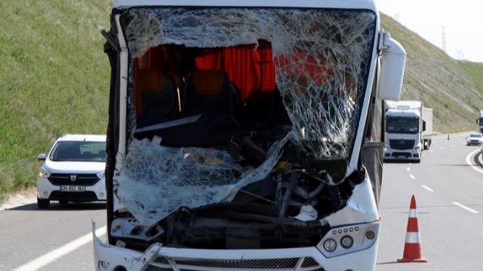 Kocaeli'nin Kuzey Marmara Otoyolu Dilovası mevkisinde, 34 KM 4887 plakalı işçi minibüsü ile 40 plakalı kamyon çarpıştı.
