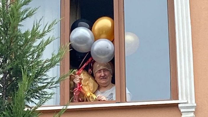 Kocaeli'de kanser tedavisi gören Raziye öğretmene duygusal kutlama