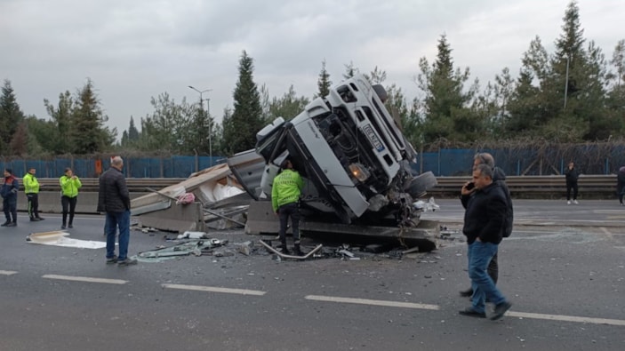 Sürücünün yaralandığı kazada, devrilen tır sebebiyle İzmit-Karamürsel yolu da ulaşıma kapandı.