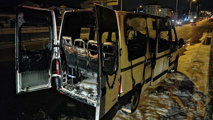 Çıkan yangında yaralanan ya da dumandan etkilenen olmazken, minibüs kullanılmaz hale geldi.
